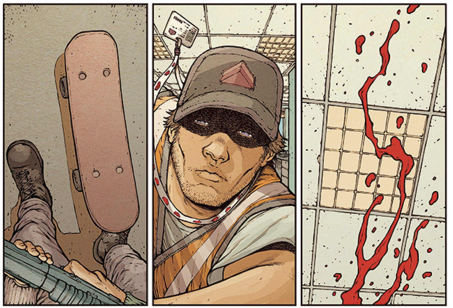 DISPATCHED, illustrated by Daniel Gete, with color by Lee Loughridge, tells the story of a delivery man trapped in the parking garage of a building under siege by domestic terrorists. Using his background in black ops, the delivery man uses his skills, and a truck full of random packages, to battle the terrorists. More information can be found at AIPT: